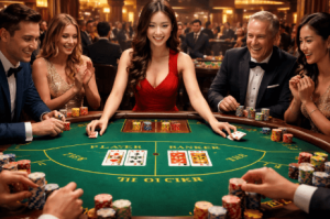 百家乐(Baccarat)是一种牌类对战游戏,玩家可选择下注“庄家(Banker)”、“闲家(Player)”或“和局(Tie)”。通过发牌比点,最终哪一方的点数更接近9,即为胜方。在百家乐在线中,这一经典玩法被完美复刻于互联网平台,结合高清直播、实时下注系统、智能数据统计等技术,实现与真实赌场几乎无异的沉浸式体验。